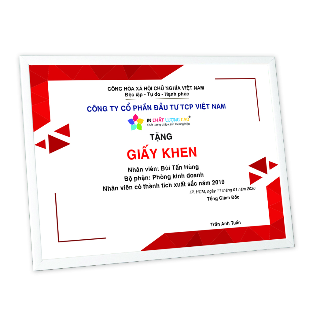 In giấy khen, thiết kế giấy khen